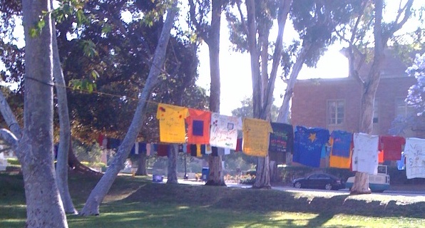 Last week was busy and filled with exams, projects, and papers. All of this stress has made it nearly impossible for me to get out of my study cave and get onto campus. The only time I was outside was when I was walking to and from class. As I walked through the sunken gardens at 8AM in the morning I saw hundreds of colorful shirts swaying in the wind. This project was being presented by a group of students who were raising awareness about violence. Each shirt that hung from the clothes lines was associated with a different type of violence (rape, sexual harassment, etc). Although the exhibition was extremely heart wrenching, it is nice to know how involved our students on campus are. These types of protests are constantly happening on campus and it is proof of how UCLA challenges students to speak up for what they believe in. I have even been involved in the budget cuts protests. Just remember to let your voice be heard for the things that you believe in!