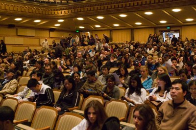 Students and Parents in Royce Hall on Bruin Day—Photo Credit: Reed Hutchinson Posted by Deborah Wong on May 17, 2012