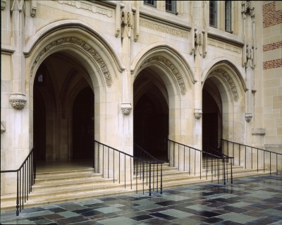 Entrance to Kerckhoff Hall Posted by Deborah Wong on October 31, 2013 The pointed Gothic arches of Kerckhoff Hall (1930) are especially distinctive at UCLA, where rounded Roman arches are the rule.